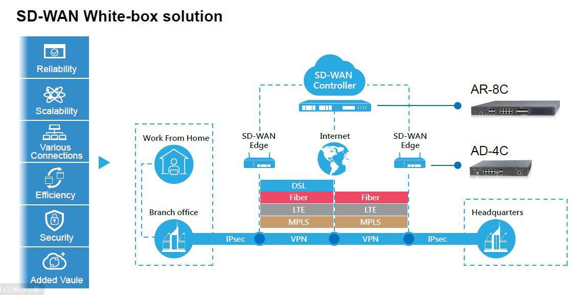 AD–4C, a desktop SD-WAN white-box solution powered by Intel® Atom® C3558 Denverton-NS 4 cores CPU, is an excellent choice for SOHO, SMB, or branch offices and perfect for vCPE/SD-WAN of SDN/NFV structure. In addition to AD– 4C, AR– 8C is a rackmount SD-WAN white-box with Intel Atom C3758 Denverton-NS 8 core CPU and perfect for branch or SME offices for SD-WAN solution.
